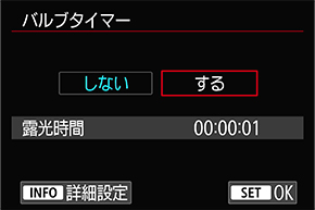 シャッターボタンを押している間、シャッターを開いて露光し続けるバルブ撮影。バルブタイマー撮影では、露光時間(1秒~99時間59分59秒)を設定することが可能です。シャッターボタンを指で押し続ける必要がないため、カメラブレが低減。長時間の露光が必要な、夜景や打ち上げ花火、星空の軌跡撮影などに便利です。