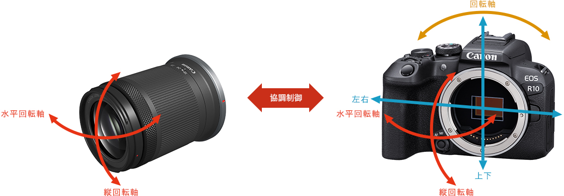 EOS R10は動画電子IS※1を搭載。手ブレ補正機構が非搭載のレンズでも、手ブレを抑えて安定した動画撮影が可能です※2。手ブレ補正機構(IS)を持つRFレンズ装着時は、レンズのISとの協調制御により、ブレを効果的に軽減できます。
