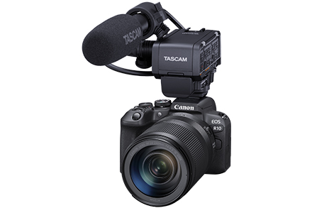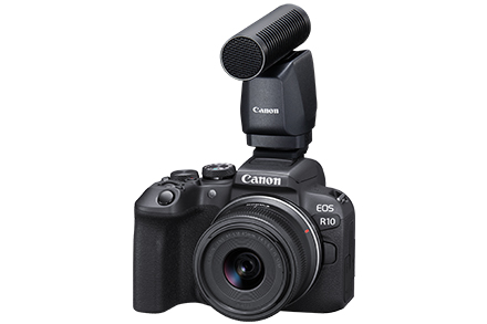 EOS R10のマルチアクセサリーシューを活かして、外部マイクとも快適に連携できます。「マルチアクセサリーシュー指向性ステレオマイクロホン DM-E1D」(別売)は、外部ノイズに強いデジタル化した音声をカメラに記録可能。ショットガン/90°120°ステレオと撮影シーンに合わせた録音方法も選択できます。「XLRマイクアダプター」(別売)を使えば、多様なマイクと接続可能。低ノイズ・広ダイナミックレンジな高音質収録を実現します。
