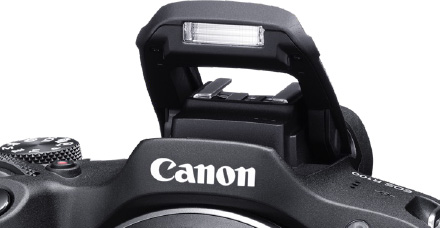 手動ポップアップ式の内蔵ストロボを搭載。日中の逆光時や室内で光量が足りないとき、手軽に明るい写真を撮影することができます。設定は「自動発光/発光/発光禁止」から選べます。
