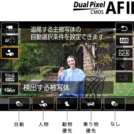 デュアルピクセルCMOS AF II によるAF撮影が可能