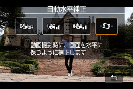 画面の傾きを補正する「自動水平補正モード」