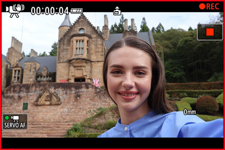 動画記録中、画面に赤枠を点滅表示。離れた場所からもREC状態をはっきり視認できます。