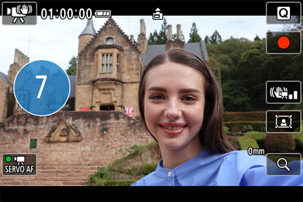 セルフタイマー設定時、動画記録を開始するまでのカウントダウンを画面上に大きく表示します。