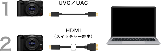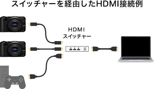 ライブストリーミングスイッチャーを利用した、よりプロフェッショナルなライブプロダクション制作を行いたい人向けに、HDMI接続配信機能を搭載。カメラを複数台使ったマルチアングル撮影や、ゲーム画面などほかの入力デバイスと画面を切り替えて配信するなど幅広く活用できます。