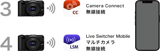 Camera Connectは、離れた場所からのリモートビュー撮影、撮影した画像の閲覧、デバイスへの保存からライブ配信まで、一連の操作が行えるスマホアプリ(無料)です。image.canonなど、ほかのキヤノン製アプリやWebサービスともショートカットで連携し、撮影した画像をすぐに活用できます。