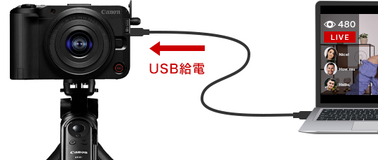 パソコンとUSB接続時、カメラに給電しながら熱による制限のないライブ配信を実現します。電池切れを気にすることなく長時間での配信を行うことができます。