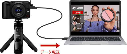 UVC/UACに対応し、USBケーブルをつなげるだけで高画質なビデオ通話やライブ配信が可能。また、4K 60P(Crop)や美肌動画※によるハイクオリティ画質での配信やレビュー用AFを設定することもできます。