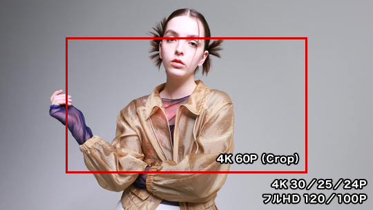 クロップで4K60Pまで対応。編集でスローモーション効果をつけるなど、映像表現の幅を広げるハイスペックな記録を可能にしています。