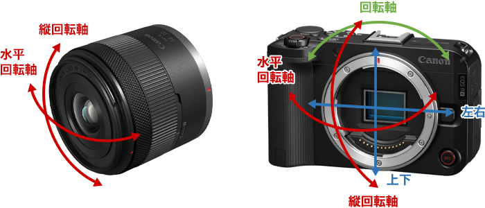 レンズ内ISを搭載したRFレンズ、RF-Sレンズ使用時に協調制御が可能となります。