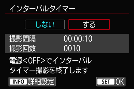 設定した撮影間隔(1秒~99時間59分59秒)と撮影回数(回数制限なし、または01~9999回)で自動的に撮影するインターバルタイマー撮影に対応。空の色の変化や雲の動きなど、タイムラプス動画の作成に活用できます。