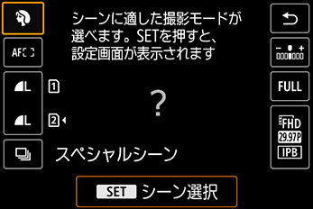 初心者でも、EOSに使い慣れていないユーザーでも、視覚的に機能を理解して操作できるビジュアルガイドを採用。[撮影モードガイド]は、モードダイヤルを回して撮影モードを変更した際に、選択した撮影モードの簡単な説明と作例が表示されます。[機能ガイド]は、撮影時/再生時のクイック設定時に、画面内に機能・項目の簡単な説明が表示されます。いずれのガイドも[MENU]で表示の有無を設定することができます。