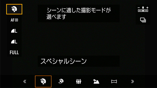 撮影時/再生時のクイック設定時、画面内に機能や項目の簡単な説明を表示する機能ガイドを搭載。EOSに使い慣れていないユーザーでも、機能を視覚的に理解できます。表示の有無は[MENU]で設定可能です。