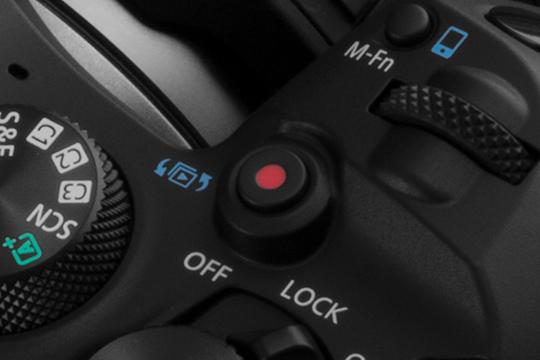 静止画撮影と動画撮影を切り換えるための独立したスイッチを搭載。モードダイヤルを操作することなく静止画/動画をすばやく切り換えられます。また、静止画/動画のどちらに設定されているかをスイッチの位置で瞬時に把握できます。