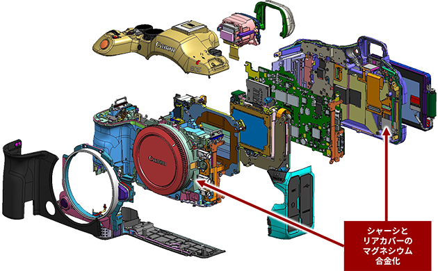 高い剛性と放熱性を有するマグネシウム合金をリアカバーにも採用。外装カバーには軽量かつ剛性を持つポリカーボネート樹脂を使用。フィールドでの撮影をサポートします。