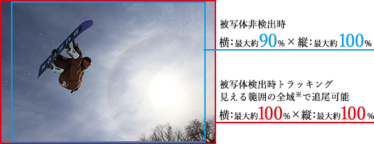測距可能エリアは、被写体検出時で画面の横:最大約100%×縦:最大約100%※を実現。画面の隅に被写体を配置する構図でも、高精度かつスピーディーなAFを実行。これまで以上に自由な構図で被写体を補足することが可能になりました。