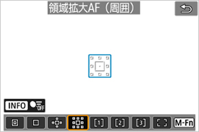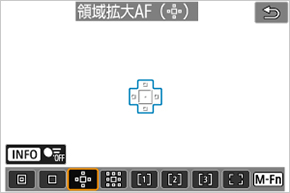 静止画撮影時の1点AF、マルチコントローラー静止画撮影時による選択時。