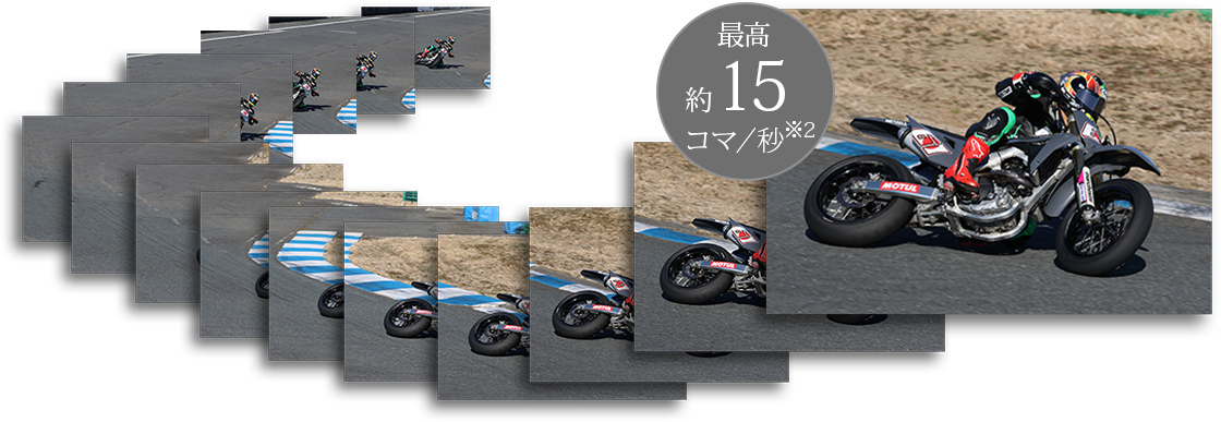 EOS Rシリーズ最速※1メカシャッター時、最高約15コマ/秒※2の高速連続撮影