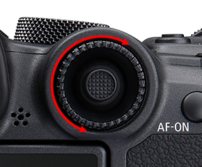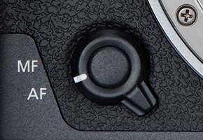 ファインダーをのぞいたままでも、AF/MFの切り換え操作が行える専用※スイッチを搭載。フォーカスモードスイッチ非搭載のRF/RF-Sレンズ装着時に有効で、指先の操作だけですばやくAF/MFを切り換えられます。