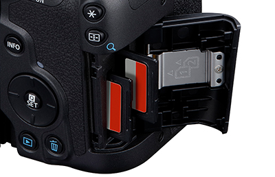 小型・軽量なボディながら、UHS-II対応のSDカードスロットを2基搭載※。静止画/動画の振り分けや、自動切り換え、同一書き込みなどが可能。ワークフローや用途に合わせて記録方法を設定できます。