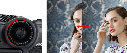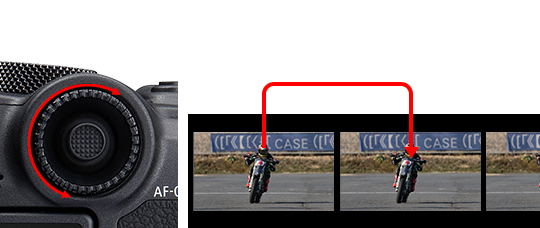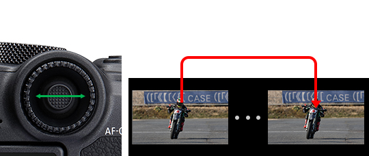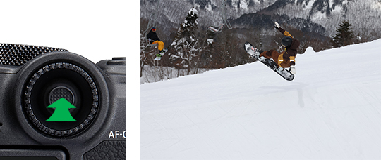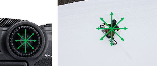 AFエリアの切り換え※や、AFフレームの位置調整を最小限の指の動きで行えます。