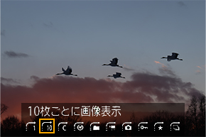 一画面で一度に[4枚/9枚/36枚/100枚]の画像が表示可能。ジャンプ表示では[1枚/10枚/指定枚数(1〜100枚)/撮影日/フォルダー/動画/静止画/プロテクト画像/レーティング画像/シーンの先頭画像]で設定が可能。画像再生中はマルチコントローラー操作で設定変更もできます。