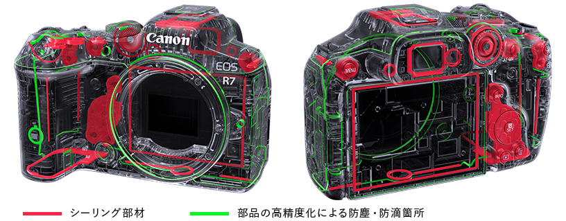防塵性、防滴性に配慮した設計を行なっていますが、ゴミやほこり、水、塩分などのカメラ内部への侵入を完全に防ぐことはできません。