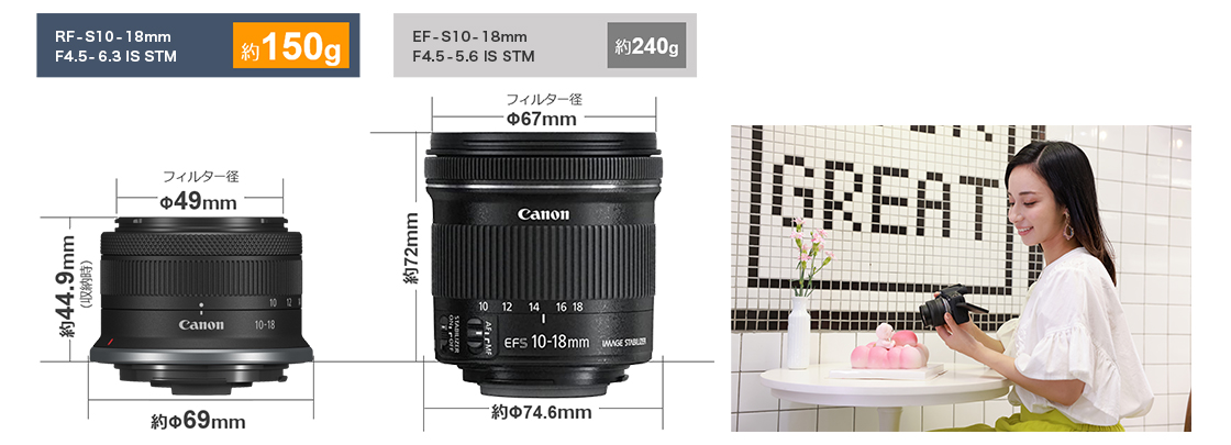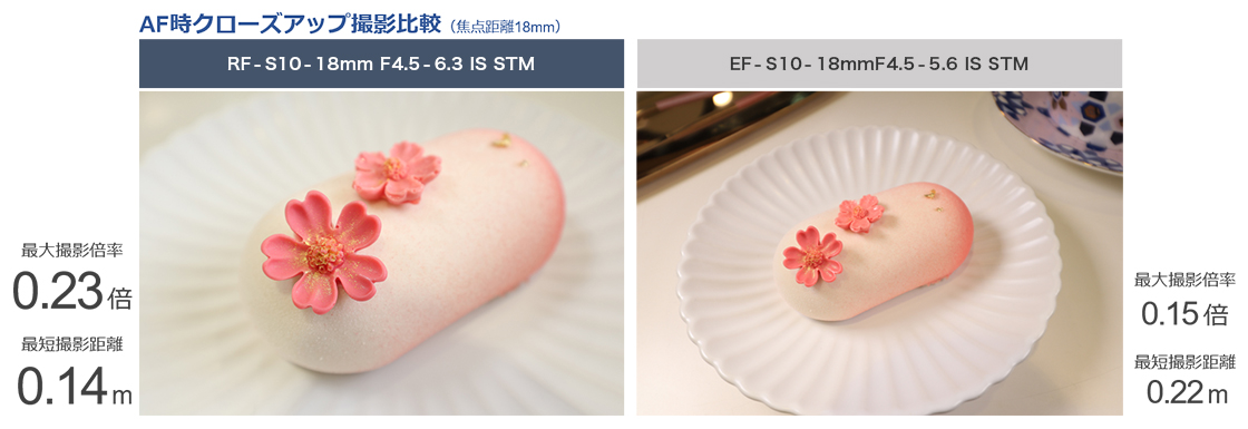 AF時最大0.23倍(焦点距離18mm)、MF時最大0.5倍(焦点距離10mm)の撮影倍率まで被写体を大きく撮影が可能。超広角レンズならではの広い画角とボケを活かした、表現力豊かなクローズアップ撮影が楽しめます。