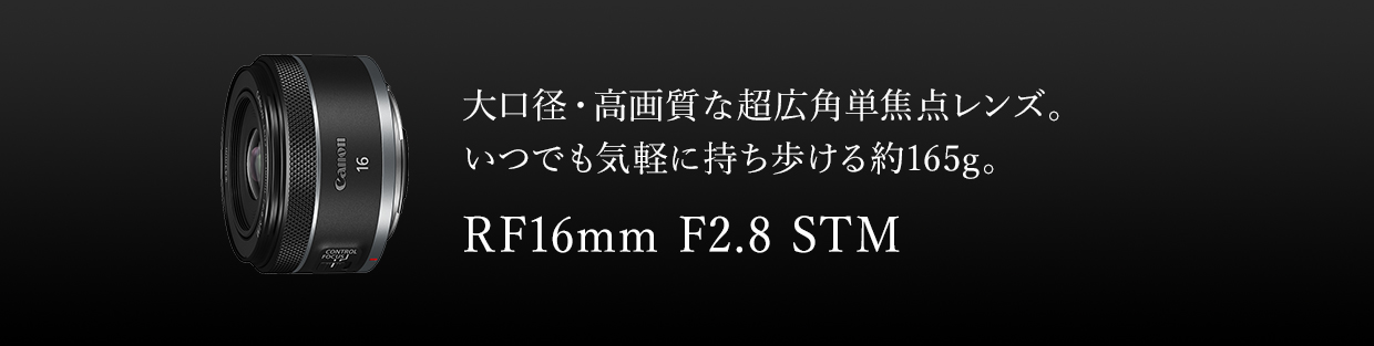 RFレンズ初となる超広角の単焦点レンズ。持ち運びやすく、スナップや風景撮影に加え、グループ撮影、自撮りなどにも適しています。