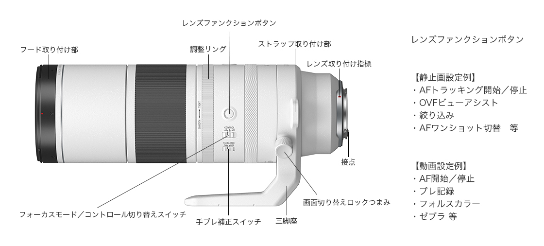 ズームリングの動きの量とトルクの重さのバランスを最適化し、滑らかなズーム作動を実現。全長が変化しても重量バランス(≒重心バランス)が変化しにくい位置に三脚リングを配置しています。またユーザーに合わせたカスタム機能も充実。機能割り当てが可能なフォーカス/コントロールリングやレンズファンクションボタンを搭載しています。ズームリングはトルク調整機構を備えています。