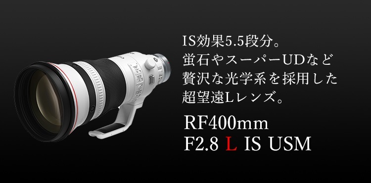 高画質と軽量化を両立したEF400mm F2.8L IS III USMの優れた光学系をRFマウントに継承。マウントアダプターを経由しない、RFマウントレンズとすることで、カメラとレンズの一体感が向上。画質もサイズも定評のあるEFモデルと同等を実現し、軽快な機動力で圧倒的な高画質撮影をアシストします。蛍石2枚、スーパーUDレンズ1枚を採用し、プロ/ハイアマが常用するフラッグシップ超望遠レンズとして色にじみのないクリアでシャープな高画質を実現しています。