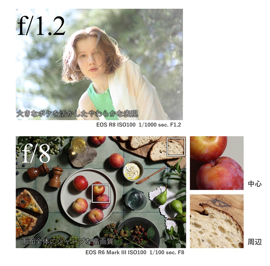 開放F値1.2の「RF/EFレンズシリーズ」において最軽量※となる質量約346gを実現しており、携帯性に優れています。