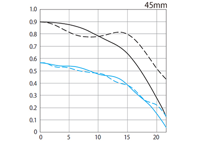 MTF特性図の見方については、「交換レンズ基礎知識」ページのMTF特性図の見方をご覧ください。