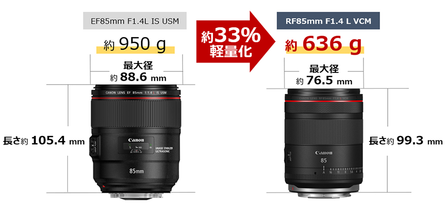 また、EF85mm F1.4L IS USMから大幅な軽量化により、機動性の向上を実現しました。
