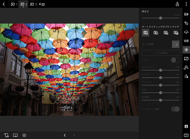 タップ、スワイプ、フリックはもちろん、2本指によるピンチイン/ピンチアウトに対応しています。iPhone、iPadならではのスムーズなクイック現像も新開発、快適な操作が可能です。