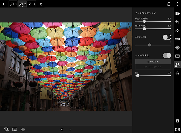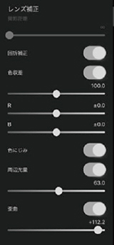 ノイズリダクション、アンシャープマスクなどをスライダーで調整して補正することができます。