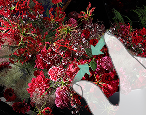 画面を縮小するときに使います。2本の指を画面に置いて、閉じるように動かします。