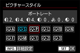 [ポートレート]や[風景]など、プリセットされたピクチャースタイルを基本に、好みに合わせて調整したピクチャースタイルを登録しておくことができます。