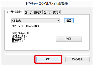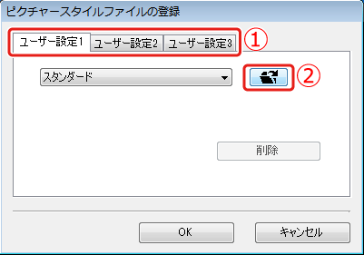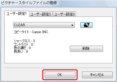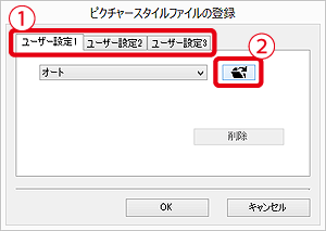 すでにピクチャースタイルファイルを同じ設定番号で登録済みの場合、以前の設定は上書きされます。 -