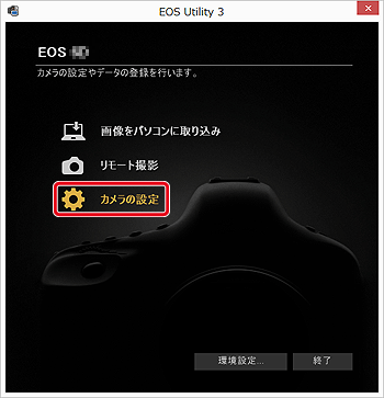 4. EOS Utility Ver.3.xが起動したら、[カメラの設定]をクリックします。