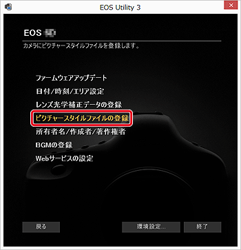 カメラに付属しているPicture Style Editorを利用してオリジナルのファイルを作成する