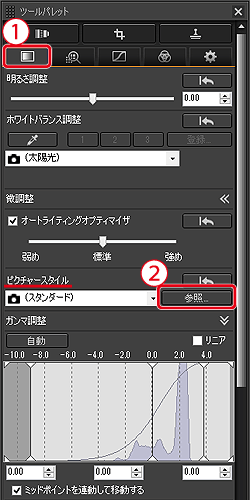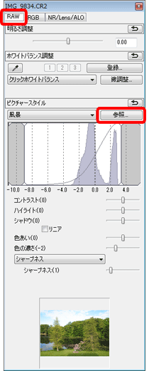 4. ツールパレットの<RAW>タブを選択し、ピクチャースタイルの「参照」をクリックします。