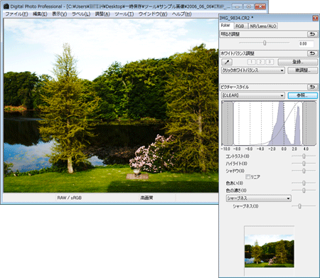 2. Digital Photo Professionalを起動し、RAW画像を表示します。