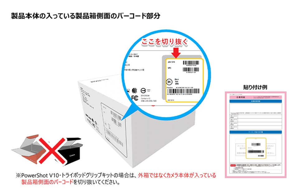 必ず製品箱のバーコード部分すべて(下の図を参照)を箱ごと切り抜いてください。
