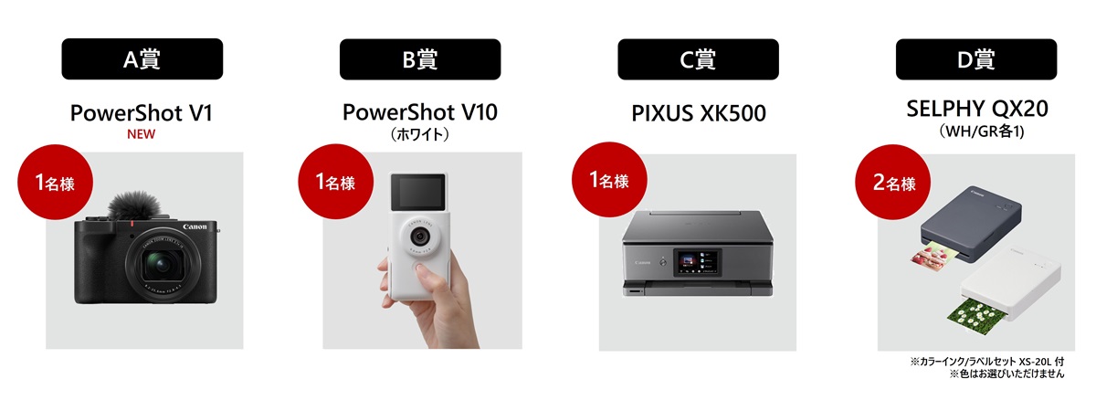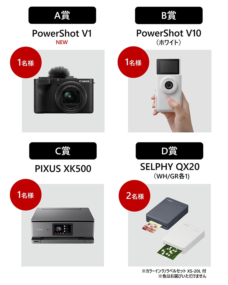 - SELPHY QX20(ホワイト・グレー)、カラーインク/ラベルセット XS-20L付・・・各色1名様