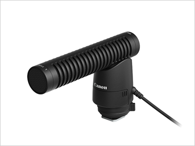 - ステレオ録音で90°/ 120°の指向性特性の切り替えが可能な外付けマイク。撮影シーンに応じて、録音する領域を3種類から選択できます。メカノイズを効果的に低減するショックマウントや、風切り音を軽減するウインドスクリーンも付属。動画用グリップのトライポッドグリップ HG-100TBR(別売)に装着することで使用可能です。