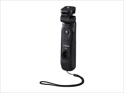 - ワイヤレスリモートコントローラー BR-E1同梱の、動画用グリップ。画角を調整しながらの自分撮りや、縦位置での動画撮影が可能です。また、グリップ部を開き小型三脚としての使用も。同梱のアタッチメントにマイクをセットすれば、より臨場感のある録画もできます。