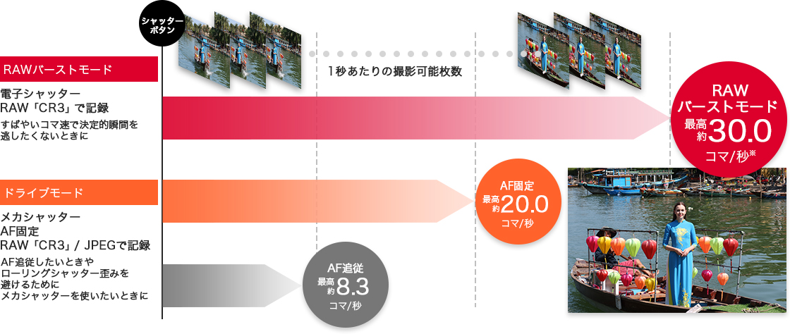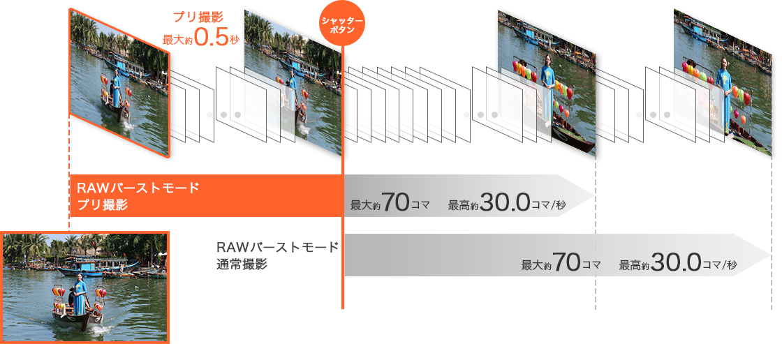 RAWバーストモードで最高「約30.0コマ/秒※の高速連写」