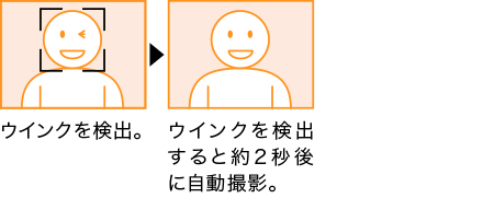 フレーム内の被写体がウインクをすると、セルフタイマーが作動して約2秒後にシャッターが切られます。