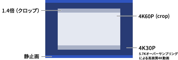 さらに、4K60P(crop)の映像出力に対応しており、ハイエンドな動画撮影に必要な高品質な映像を手軽に撮影できます。